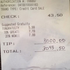 3,000 tip for New York waitress
