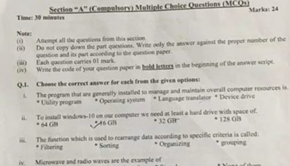 Karachi Board 10th Class Computer Science Guess Papers 2024
