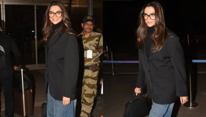 Deepika Padukone all smiles for the paparazzi as she jets off to the US for the Oscars