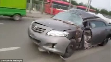 Not giving up: Completely destroyed car doing what can only be done in Pakistan